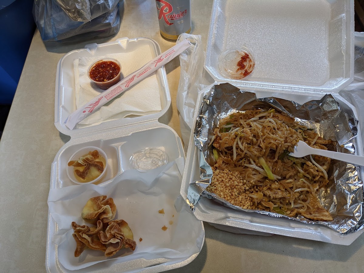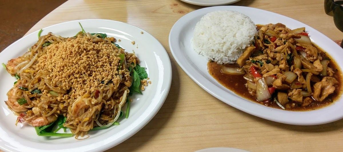 First time here after finding this little Secret Thai Place. It is off the beaten path, hole in the wall and no dine in, BUT you can take it to go and have a beer at Mick Duffs at the other end of the building. Good good, long wait (1 hour) for us. If you like Thai food and local music beer this is a good place to eat from.